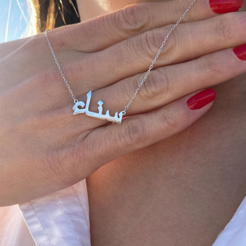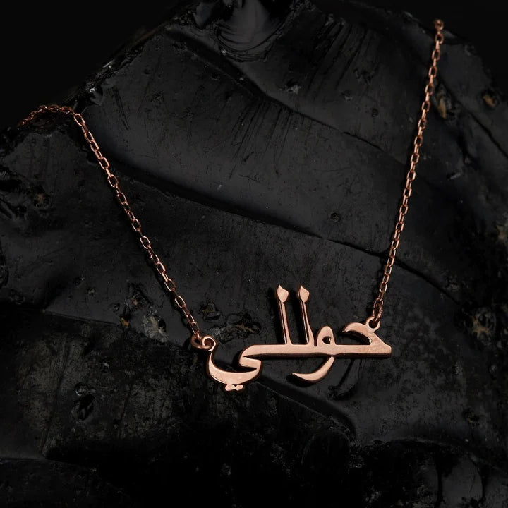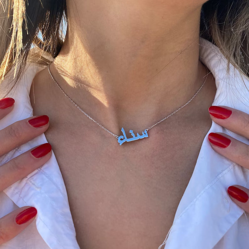 A personalized name necklace is a trend now. Personalize these arabic necklace with your choice of words, names. You can wear this beautiful arabic pendant necklace with your name and your loved one's names.